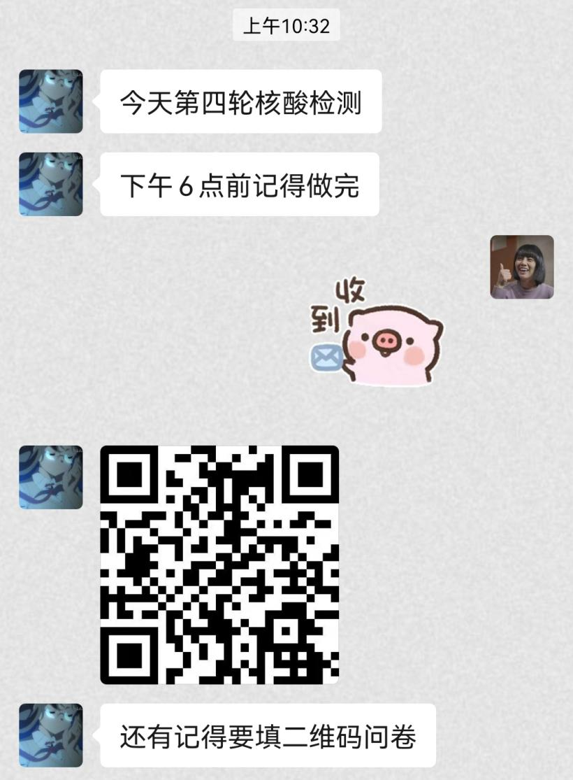 19级师生立刻采取措施,辅导员梁韵基、刘佳琪立即召开线上班委会,及时传达学校的疫情防控工作部署。自西安疫情暴发后,辅导员梁韵基老师一直坚守长安校区,每晚坚持走访学生宿舍,了解学生的近况和心理动向,与学生聊学业、聊家常,极大地缓解了学生们的恐慌心理。与此同时,两位老师与学生并肩作战,24小时待命,时刻关注学生的身心状况,随时准备为同学们提供帮助。