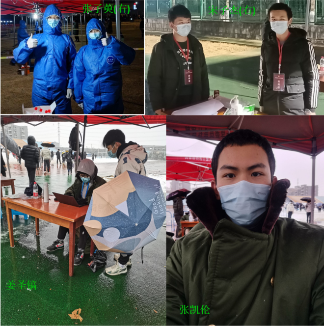 本科2020级多名学生挺身而出,担任了核酸检测工作志愿者,负责核酸检测师生健康码、身份证、一卡通的核对以及后台数据的处理等工作。尽管天气寒冷,防护服的束缚与长时间站立让志愿者们有些疲惫,但志愿者们毫无怨言。成人论坛