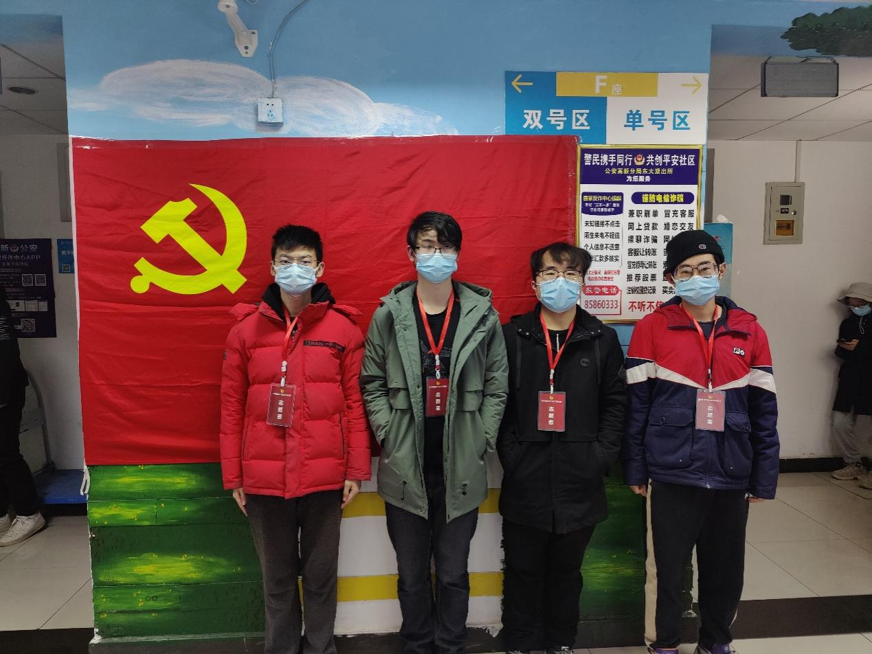 李承欣等四位党员来自本科生2019级党支部,在抗疫期间,几位党员坚守一线。从12月27日晚,他们开始服务云F宿舍楼的一千三百多位学生。组建两支井然有序的志愿者队伍,每天工作十二小时。他们要负责一日三餐,回收生活垃圾,通知核酸检测,派发生活物资,统计第二天餐量等等工作。尽管有着要比正常同学早起的压力,有着派发物资时门口寒风的冷冽,有着每天几十箱饭盒的重量,有着每天十几袋超多垃圾的苦恼,他们不怕苦、不怕累,积极为群众服务,展现了志愿者的风采,发挥了党员的先锋作用!