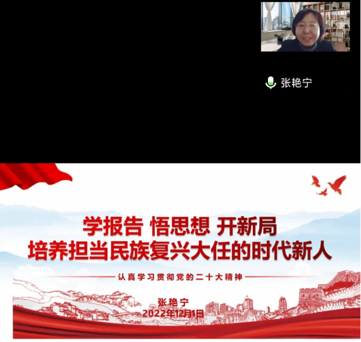 张艳宁就党的二十大精神的丰富内涵和重大意义、赓续“西工大现象”、如何培养一流拔尖创新人才和时代新人等三个方面进行宣讲,并结合研究生教育和成人论坛