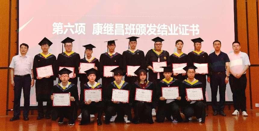 李春科、郭斌、崔禾磊老师为康继昌班的首批毕业生颁发了结业证书。康继昌班的学生代表魏天昊上台发言。他回顾了在康班三年里的学习和生活,分享了自己的心得体会,特别展示了康班在学习和竞赛中获得的优异成绩。