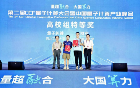 张伟伟副教授指导的本科生参赛队伍“量子纠缠”队在初赛、决赛中圆满完成了线性方程组求解、量子态制备、任意幺正变换的实现等量子算法设计和实现,一路过关斩将,最终取得特等奖的优异成绩。“量子纠缠”队员为西工大成人论坛