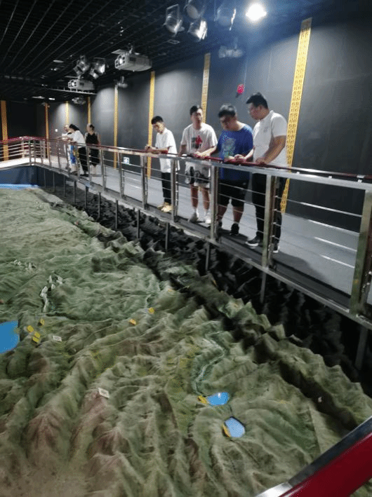 博物馆第一展区以“流域地理”为主题,向实践队员们勾勒出一幅黄河自然概况图:大约6700万年前,喜马拉雅造山运动和青藏高原整体抬升,原来散落在黄河流域的众多湖泊,逐渐融汇,大约14万年前,形成万里巨川——黄河。实践队员行至黄河流域沙盘模型前,黄河流域河川大地尽收眼底,黄河如腾飞的巨龙,翱翔在中国北方大地上。