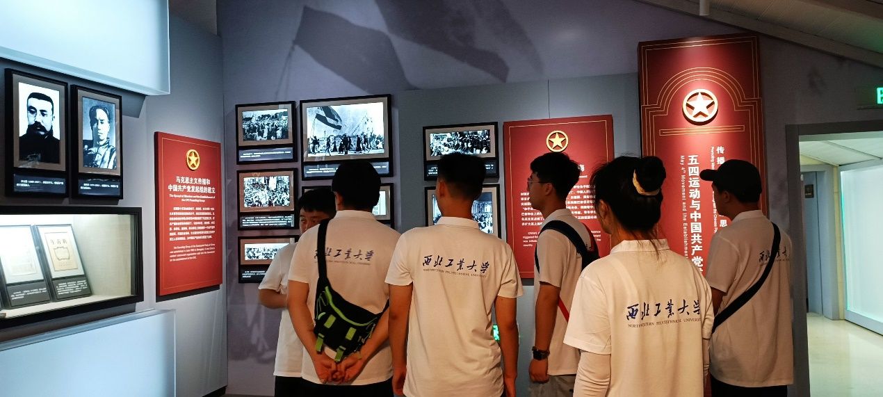随后,实践队员们步入中共一大会址纪念馆内部,追随《伟大的开端——中国共产党创建历史陈列》脚步,相继参观了“前仆后继,救亡图存”、“民众觉醒,主义抉择”、“早期组织,星火初燃”、“开天辟地,日出东方”等7个展区,深入了解了中国共产党的发展历程、党的初心和使命以及中国共产党在中国革命和建设事业中的伟大贡献,真切感受到了革命先驱们争取民族独立、人民解放和国家富强所做出的艰苦努力。走在纪念馆的展厅里,13位一大代表铜像、72个版本的《共产党宣言》、1:1实景复原的中共一大会址场景,都在讲述着开天辟地、可歌可泣的建党历史,让实践队员们在所看所听所感中真正理解中国共产党为什么“能”、马克思主义为什么“行”、中国特色社会主义为什么“好”。