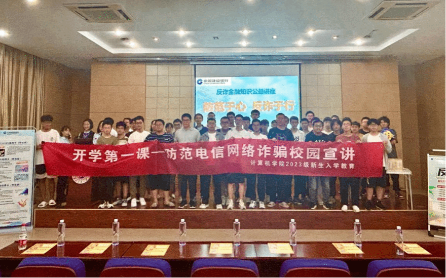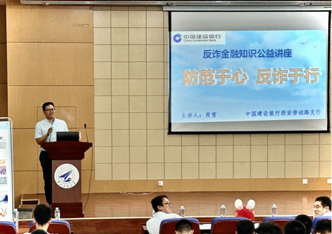 于9月11日在学院新报告厅组织开展了“开学第一课——防范电信网络诈骗校园宣讲”的金融安全教育活动。本次活动以“防范于心 反诈于行”为主题,特别邀请了中国建设银行的专家与新生面对面进行了一场别开生面的防范电信网络诈骗主题课。