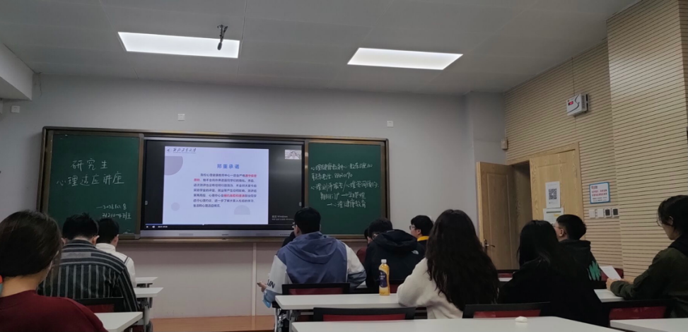组织2021级研究生于10月8日下午在教学东楼B座集中参加了“新生心理适应”专题讲座。讲座主要包括了学生心理健康教育中心基本情况、大学生活提前看、心理评测结果解释和大学生活适应不良情况及调试方法等四方面的内容。