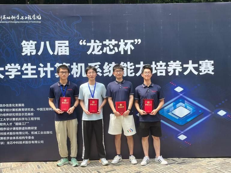 一队”设计了基于LoongArch指令集的CPU,综合应用多种微体系结构优化技术进行系统性能调优,在基于组委会提供的FPGA平台上成功启动了Linux操作系统。经过功能完整性和性能测试、系统运行展示和答辩等多个环节,最终获得了团体赛二等奖,赵鹏同学获得本次大赛个人赛三等奖。