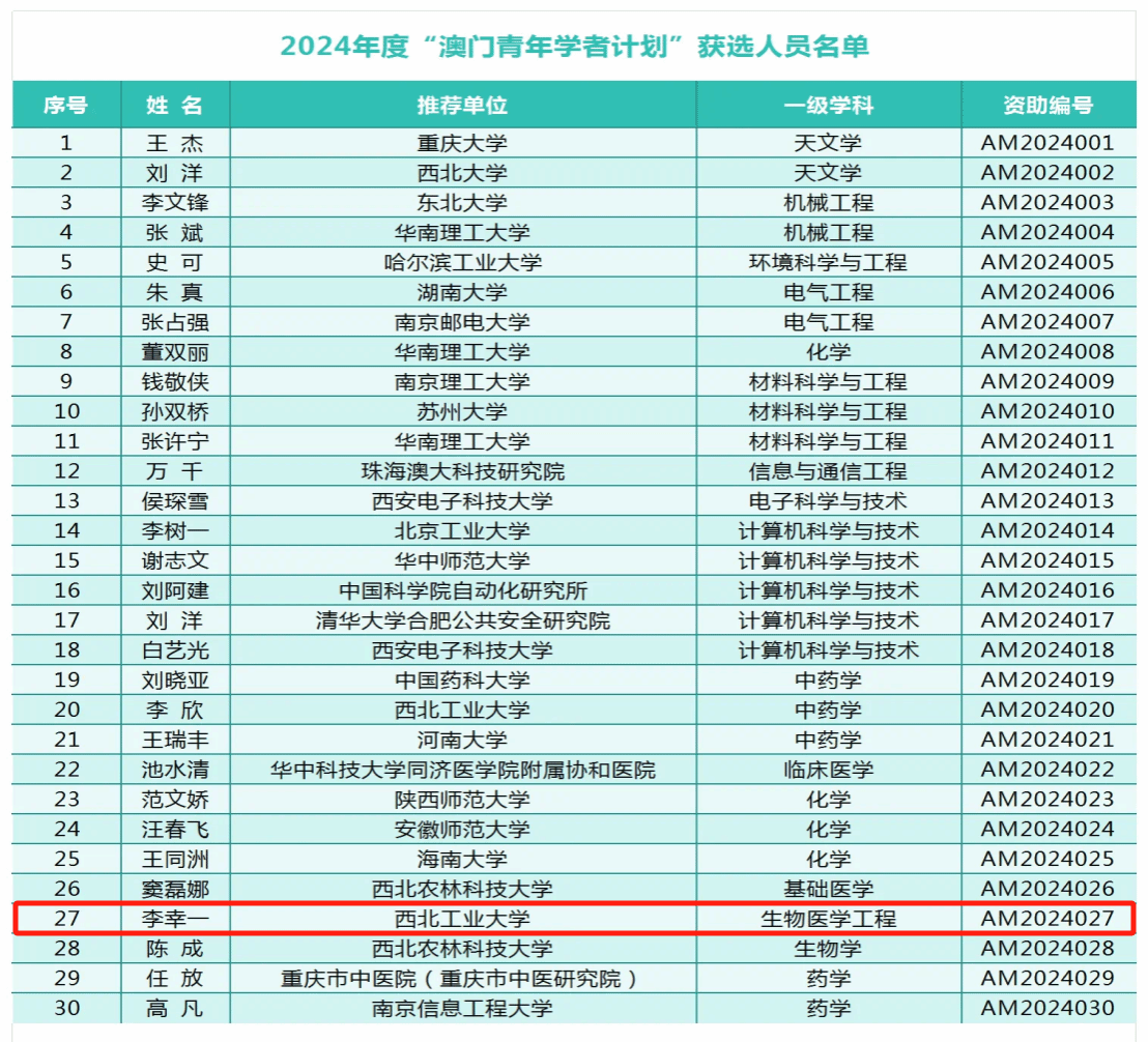 9月初,全国博士后管委会办公室公布了2024年度“澳门青年学者计划”获选结果名单。本年度,“澳门青年学者计划”在内地高校共计资助30人,成人论坛