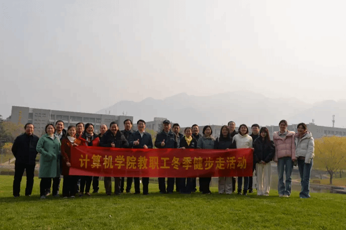 活动伊始,大家齐聚学院南楼西门前,在院党委书记李春科的带领下开始了健步走活动。大家从学院楼出发,沿着三航大道,绕行启真湖,穿过启真楼、图书馆,沿着长安大道到达终点银河路转盘大飞机处。一路上,大家精神抖擞、有说有笑,边走边享受着冬日校园之美、健行之乐,边走边畅想、交流着工作心得、分享着生活趣事,共同感受着层林尽染、交相辉映的校园美景带来的恬静和美好。
