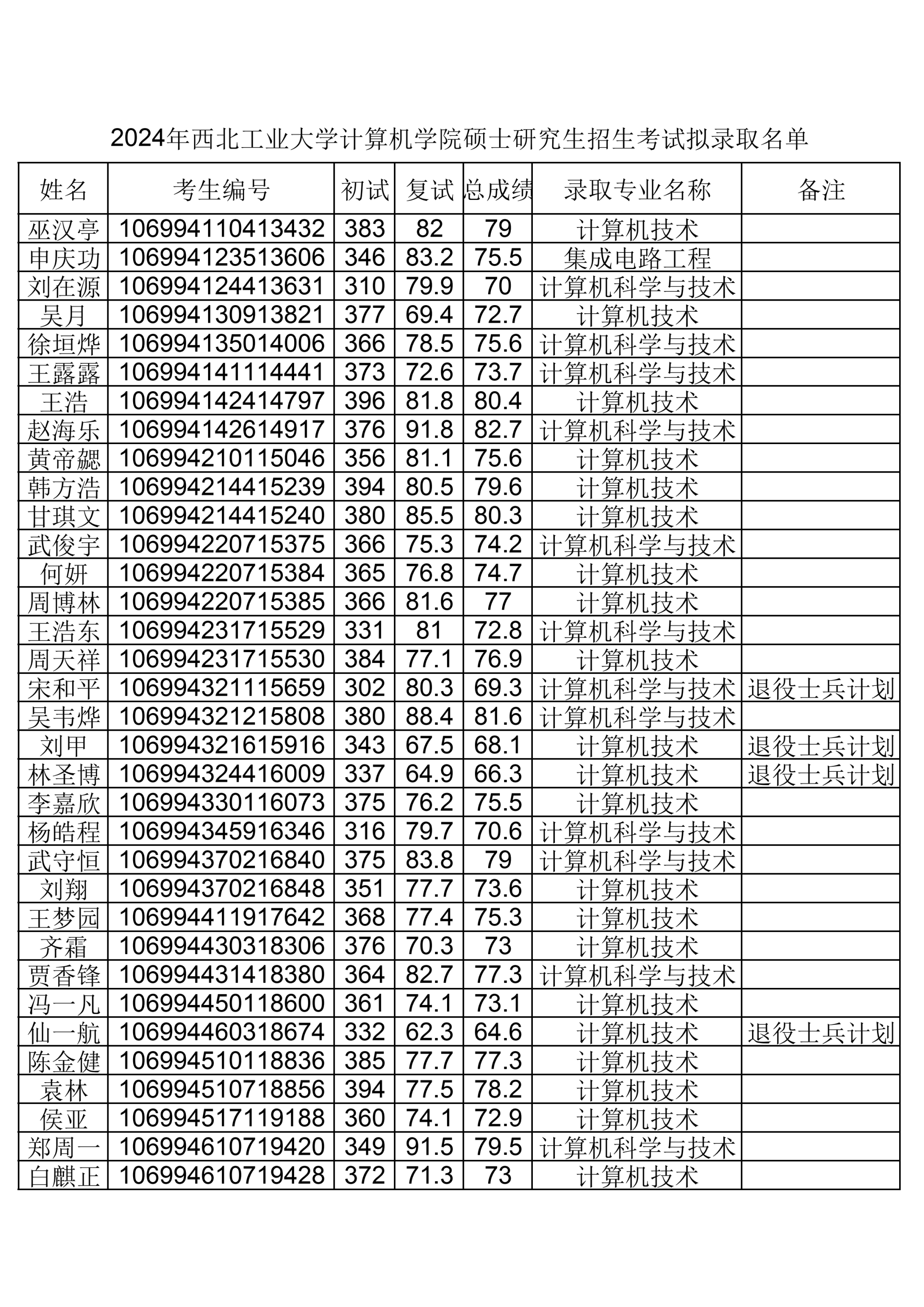 硕士研究生拟录取名单的通知
