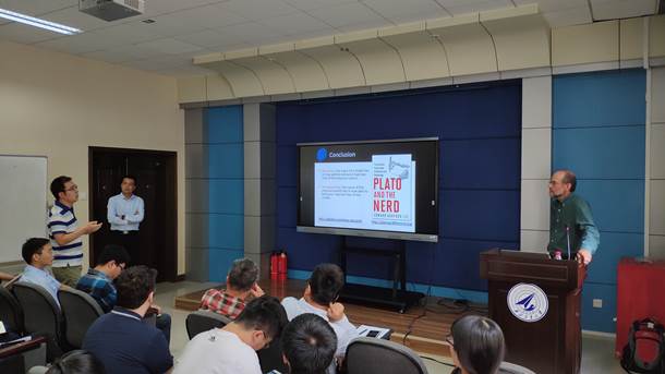 本次报告中,Lee教授首先阐述了经典的实时性问题,分别从硬件与软件、科学与工程的角度对该问题进行了深入剖析。进而,结合其团队近年来在实时系统、信息物理融合系统(CPS)研究方面的工作及进展给出了基于确定性模型的实时软件与系统的设计方法,以及在本领域的未来研究方向以及所存在的几个关键挑战。报告内容引起了与会教师与学生的极大兴趣,就所关注的问题进行了热烈讨论。报告过程中,Lee教授和张凯龙副教授还为部分师生进行了现场签名赠书,《嵌入式系统导论—CPS方法》(第2版)(Edward A. Lee著,张凯龙译)、《嵌入式系统体系、原理与设计》(张凯龙编著),进一步促进了学术交流。随后,Lee教授来到成人论坛