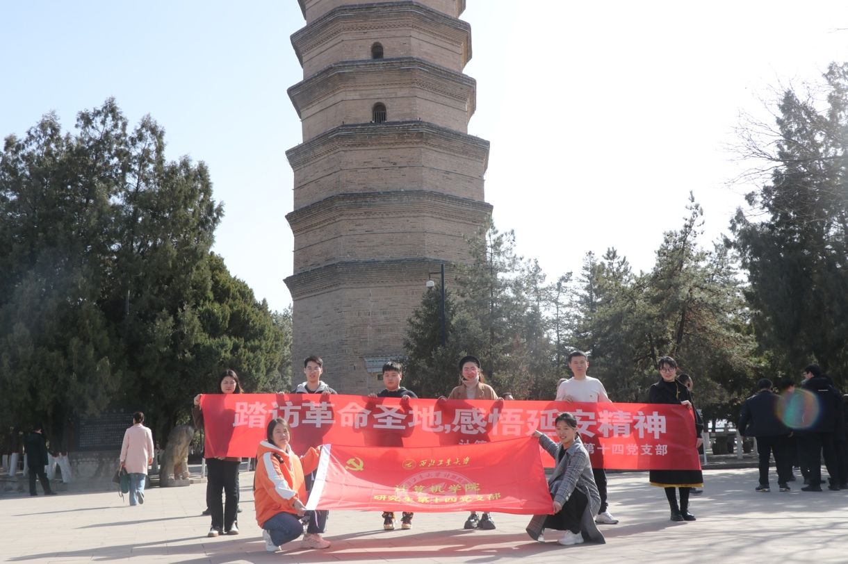 党的二十大报告提出,要弘扬以伟大建党精神为源头的中国共产党人精神谱系。延安精神,作为这精神谱系中的重要组成部分,激励了一代代中国共产党人。为加强学生党员教育,缅怀革命先烈,感悟延安精神,3月4日至5日,计算机学院研究生第十四党支部在周颖老师的带领下赴延安宝塔山公园、延安革命纪念馆等地开展实地研学活动。