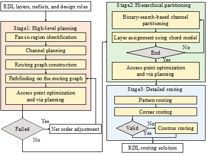 近日,人机物融合智能计算团队的研究成果“Hierarchical Partitioning-Based Inter-Chip Redistribution Layer Routing for Fan-Out Wafer-Level Packaging”被集成电路设计自动化领域顶级期刊IEEE Transactions on Computer-Aided Design of Integrated Circuits and Systems (TCAD, CCF-A类) 全文接收。该成果第一作者为西北工业大学计算机学院本科生徐浩洋(指导老师黄兴教授),这是学院实施本科生“拔尖筑基荣誉导师计划”以来的又一突出成效。此外,该研究由西北工业大学牵头,同中国香港、美国等高校和企业合作完成,彰显了计算机学院大力推进国际化办学的宗旨。