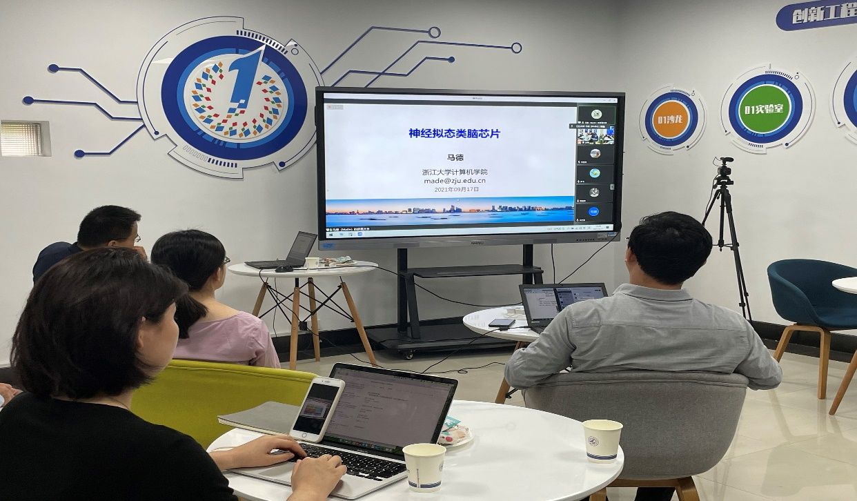 交叉、渗透、融合、创新是当前学科发展的必然趋势,为促进计算机学科迈上新台阶, 2021年9月17日上午,计算机学院组织举行了第22期“01学术沙龙”,是第二期以学科交叉为主题的活动。本次沙龙围绕 “仿生智能计算架构与芯片实现”这一主题,特别邀请了北京灵汐科技公司华宝洪,浙江大学计算机学院马德副教授,清华大学电子工程系乔飞副研究员,西北工业大学微电子学院汪钰成副教授进行报告交流,活动由高武教授主持,线上线下相结合方式开展交流,共计23名师生参加。