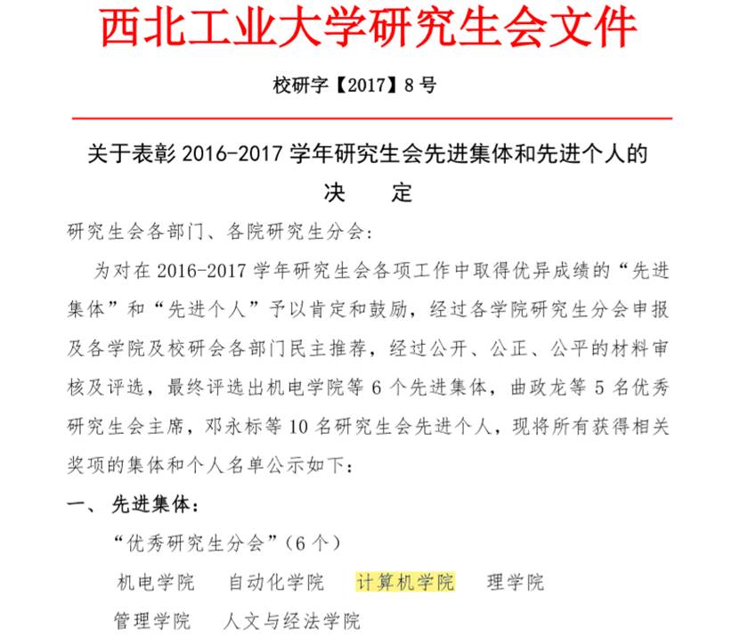 (4)定期完成西北工业大学计算机学院研究生会工作总结,及时将工作情况汇报上级领导机构;