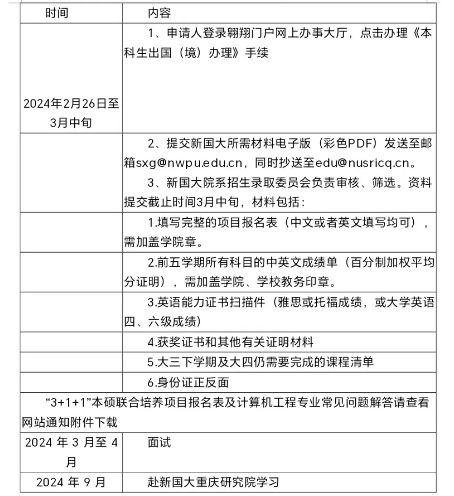 申请条件:申请人须按西工大培养计划完成前5个学期的学业,平均学分绩82分及以上。且不能有不及格课程或实践性环节。派出前,候选人须按西工大培养计划完成前三年的学业。